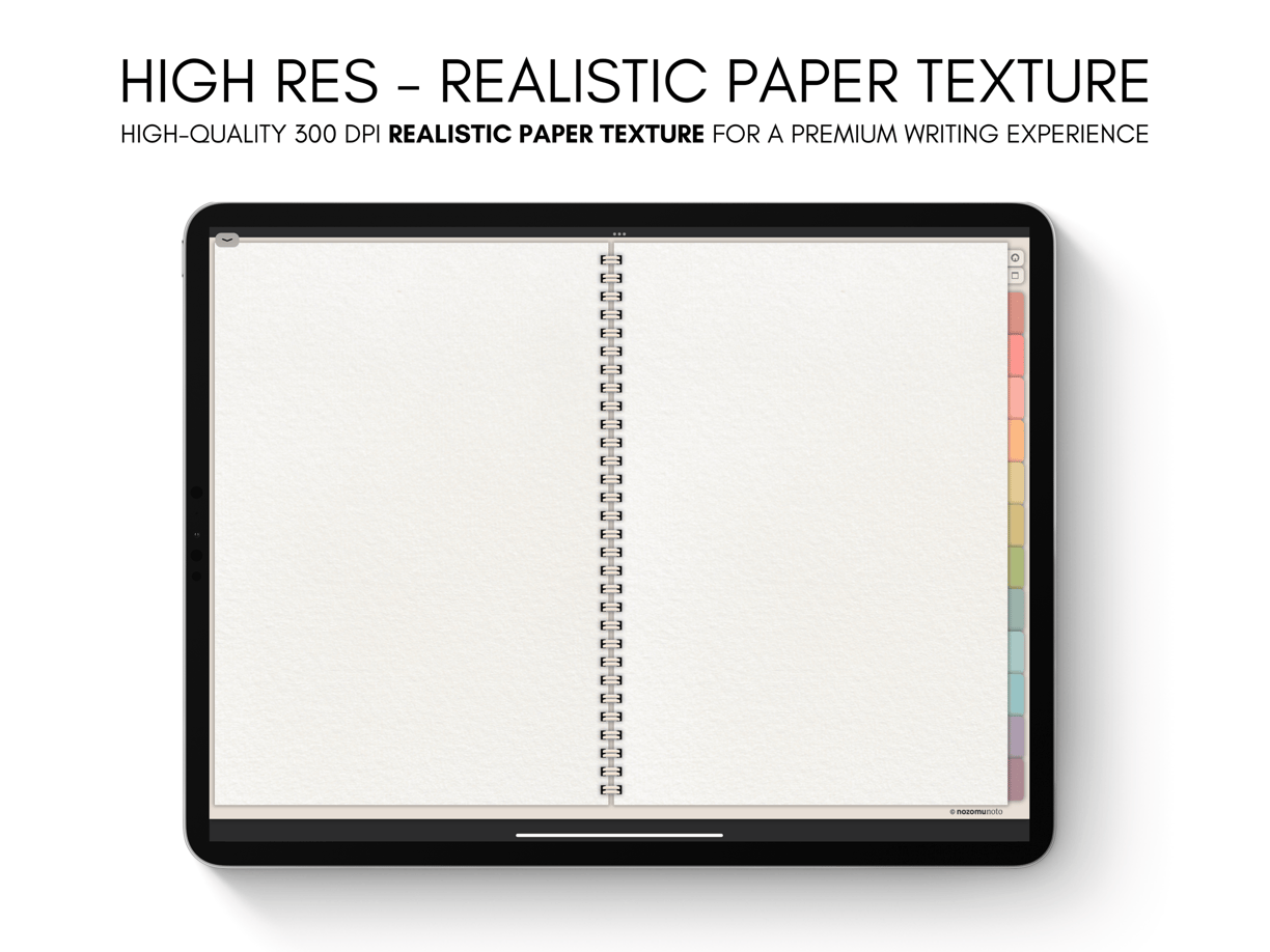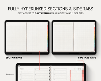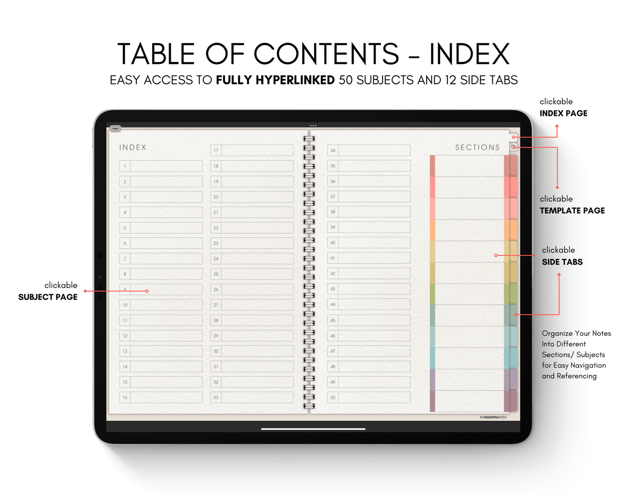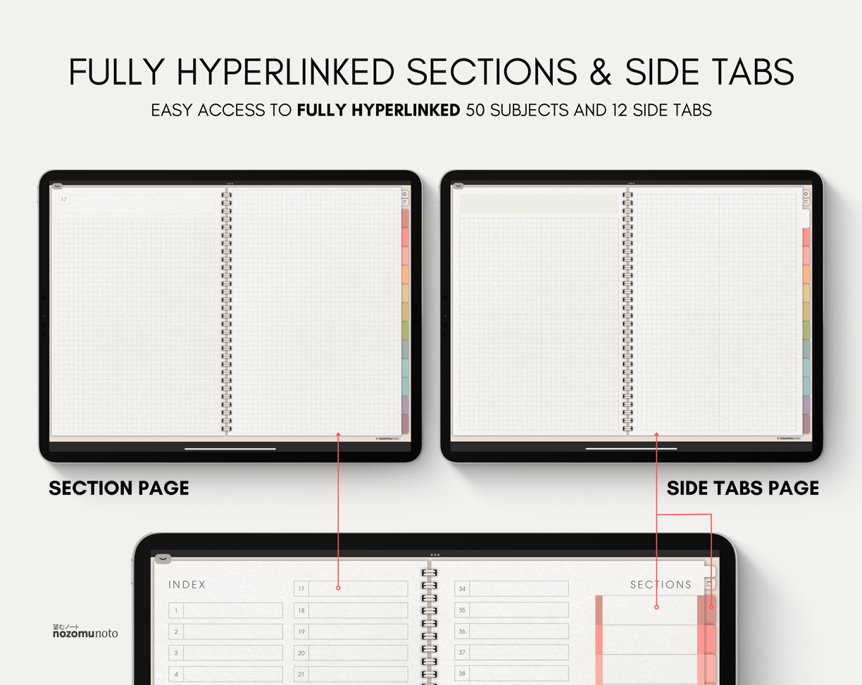 50 SECTIONS - 12 SIDE TABS - HYPERLINKED - REAL PAPER TEXTURE - MINIMALIST JAPANESE DESIGN