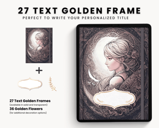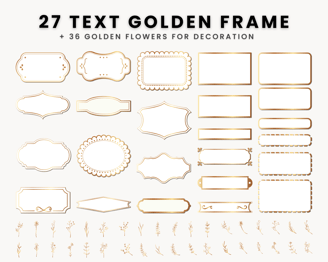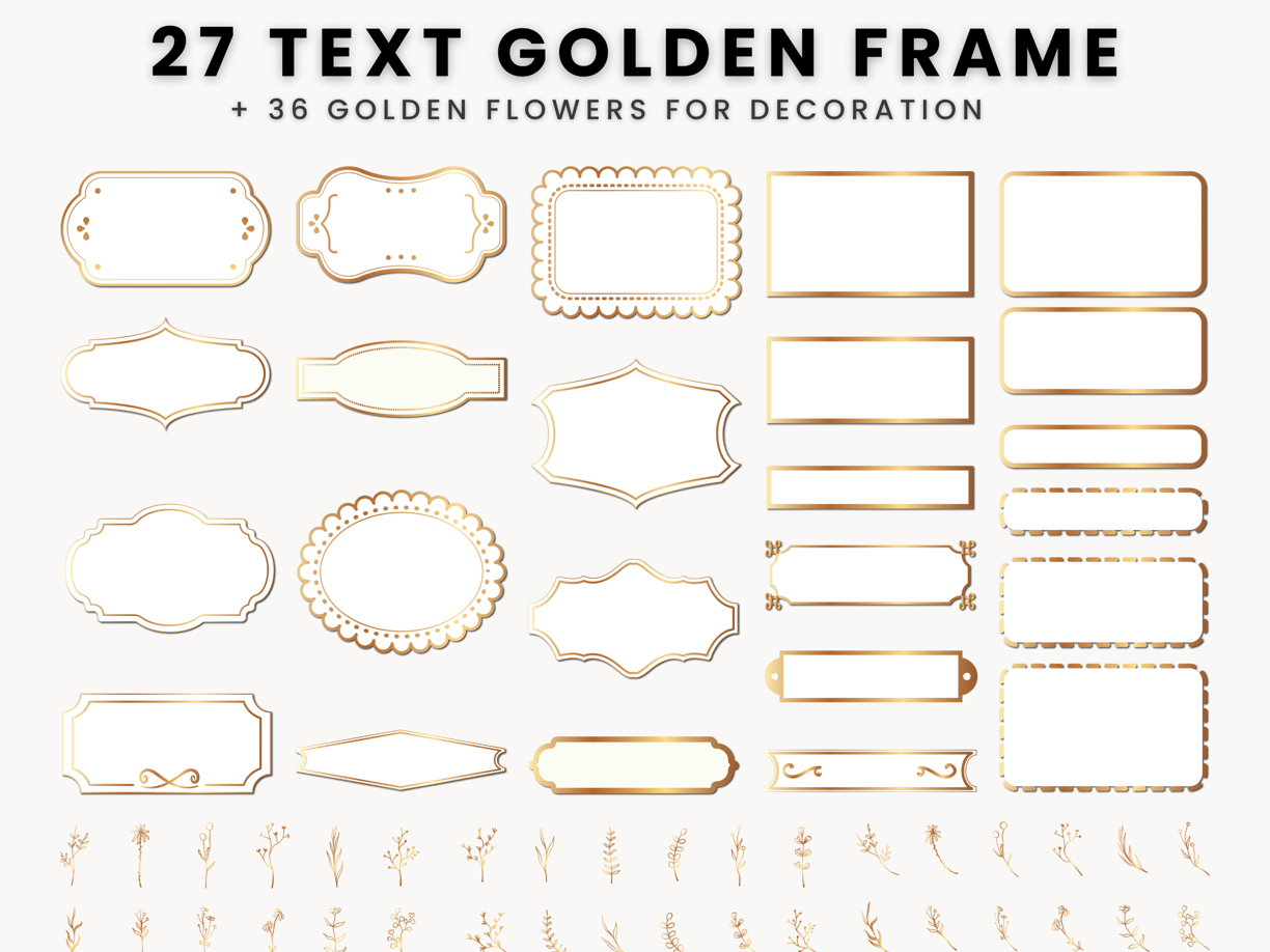 27 Golden text frames (27 solid and 27 transparent, with 36 golden flowers for decoration)