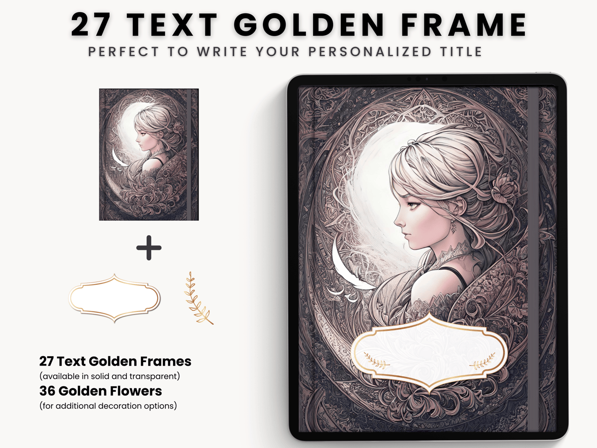 1 x Zip File (90 Golden Text Frame & Flower Stickers)